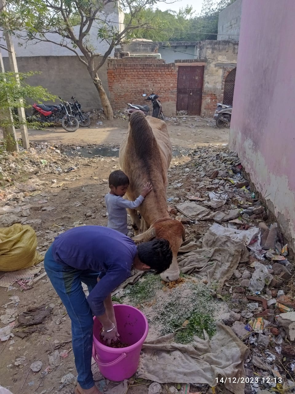 "Da die verwaisten Kühe, Bullen und Kälber aus der Not heraus, um überleben zu können, in den Gassen Vrindavans nach Nahrung suchen, haben wir es uns zur Aufgabe gemacht, für sie zu sorgen. In den Müllhaufen, die das gesamte Stadtbild prägen, finden sie kaum etwas Verwertbares und nehmen deshalb oftmals völlig verdorbene, …