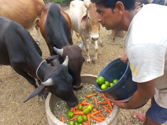 ... unserem Projekt zurückzulegen, ist ein mobiler Futtertransfer per Motorrikscha eingerichtet, der täglich das Futter zu den jeweiligen Sandorten der Rinder bringt und so die Kühe und Bullen vor Ort mit Lebensmitteln versorgt."